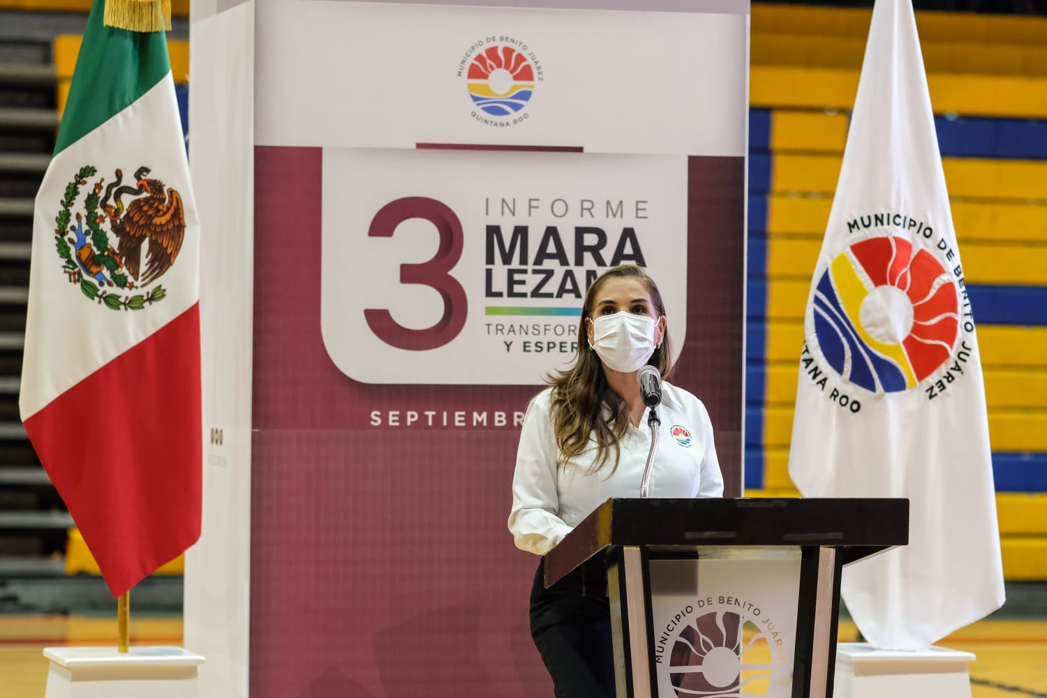 Cancún, Q.R., a 21 de septiembre de 2021.– La Presidenta Municipal Mara Lezama presentó ante la comunidad deportiva las acciones que a lo largo de tres años de gestión se desarrollaron para fomentar una vida más saludable y recomponer el tejido social como parte de una estrategia integral de la administración 2018-2021.