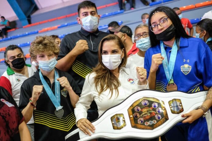 Acompañada de Yessenia Gómez, Campeona Mundial Mini Mosca del CMB y Ana Vázquez, atleta de tiro con arco, al presentar el balance de sus logros a representantes del sector deportivo en sus ámbitos amateur, profesional, estudiantil, así como promotores populares, en el gimnasio “Kuchil Baaxal”, la Presidenta Municipal reconoció el esfuerzo de este gremio para la reactivación de manera segura a las actividades deportivas.