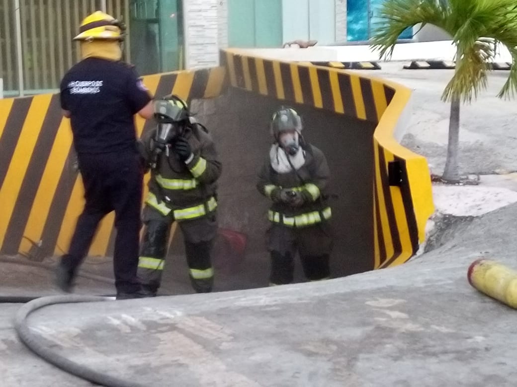 Cancún.- Un automóvil se incendió al interior de un estacionamiento subterráneo en la plaza Paseo Kabah, ubicada sobre la avenida Kabah, entre Nichupté y Chinchorro (frente al Instituto Tecnológico), lo que obligó a la evacuación de estos edificios, ante la espesa columna de humo que comenzó a emanar del lugar.