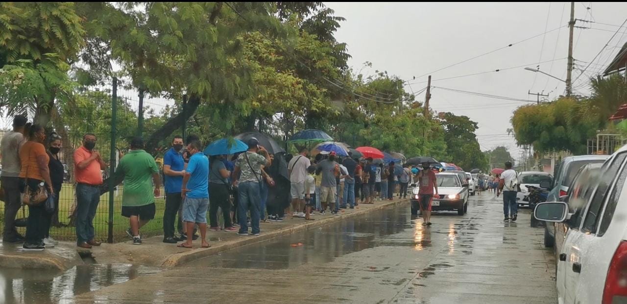 Cancún.- La jornada de vacunación contra el COVID-19 se reaunudó esta mañana en la ciudad, ahora para el grupo de 40 a 49 años, de acuerdo a la convocatoria; sin embargo, persiste la confusión entre la ciudadanía, que llevó a muchos a hacer filas en vano, incluso mojándose por la lluvia matutina, lo que derivó en reclamos.