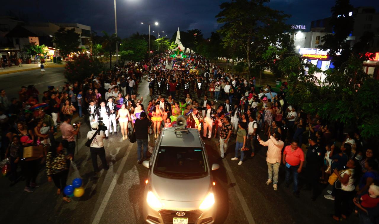 La Primera Autoridad Municipal acompañó a los niños y jóvenes que participaron en el tradicional desfile en el que participaron 23 carros alegóricos y más de mil personas en los contingentes, el cual en su tradicional derrotero inició en Av. Chichén Itzá y recorrió la Av. Tulum hasta llegar frente al Palacio Municipal.