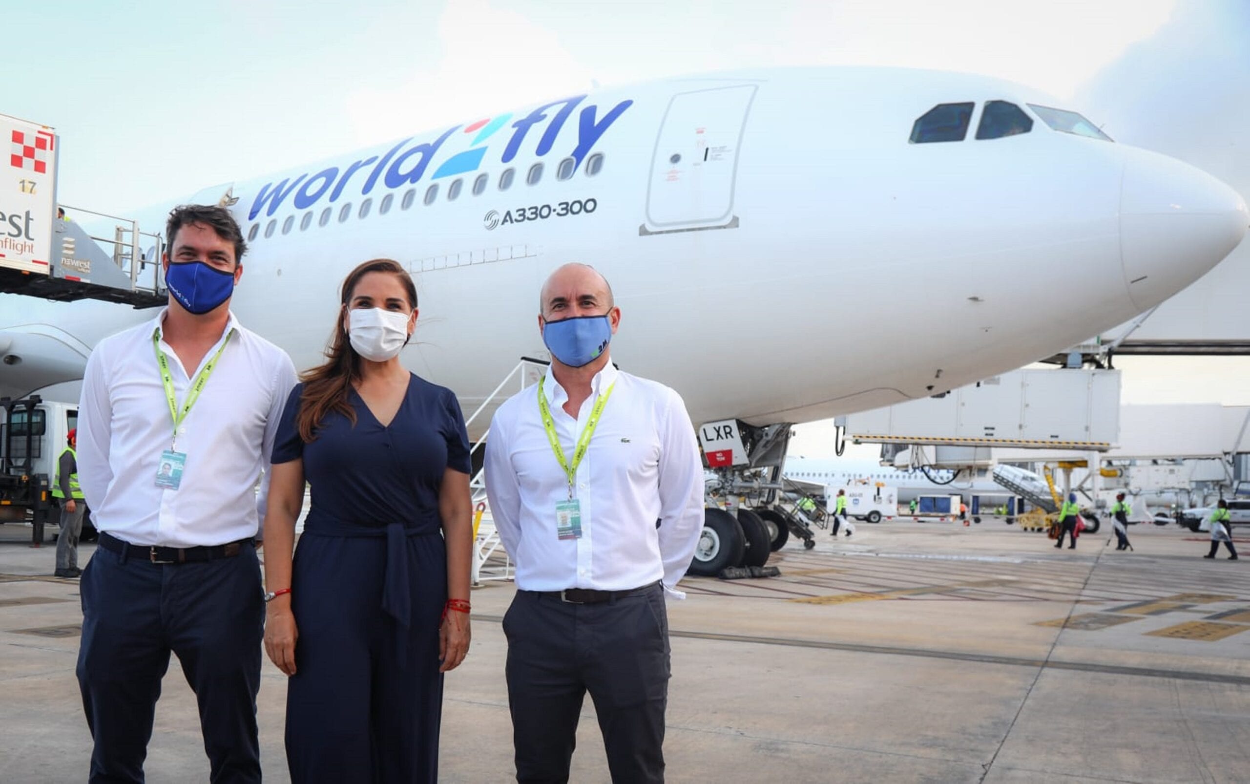 En la bienvenida al vuelo inaugural se encontraron presentes también el director del Consejo de Promoción Turística de Quintana Roo, Darío Flota Ocampo; el gerente de Relaciones Institucionales de Asur, Alejandro Rosel Ramírez; el director de W2fly para México, Víctor Lorenzo, junto con el vicepresidente Alejandro Suárez; entre otros invitados.
