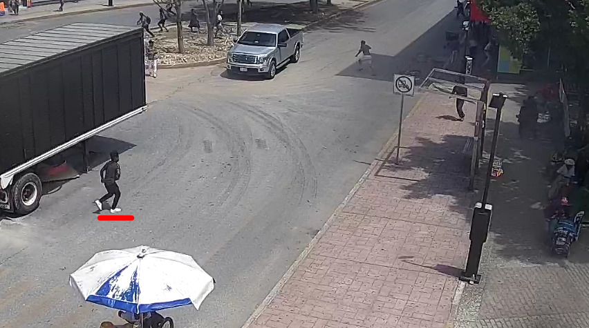 Mientras el tercer pistolero (de tenis blancos) es buscado por las autoridades.