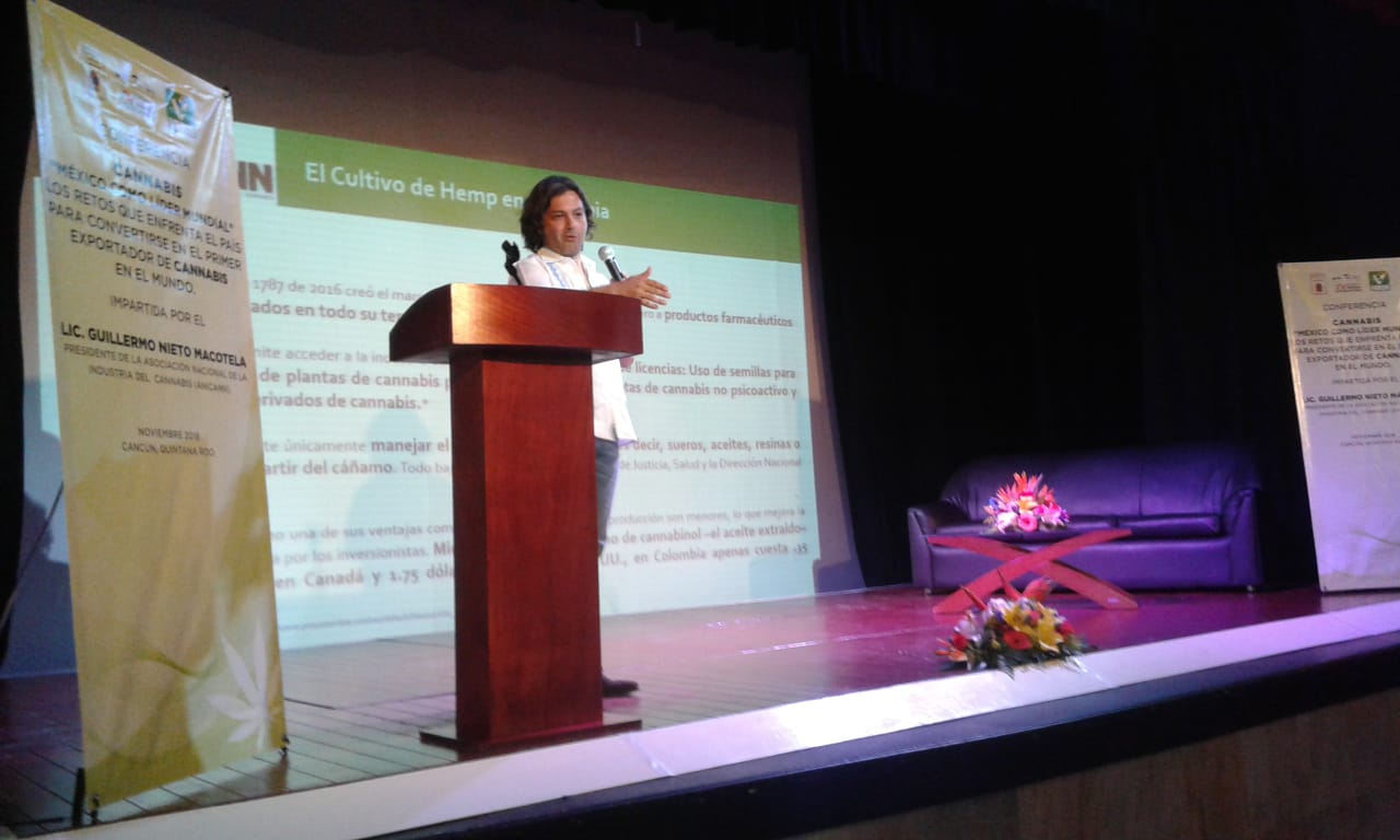 Cancún.- Invitado por la fracción parlamentaria del PVEM de la XV Legislatura, en el teatro 8 de Octubre, Guillermo Nieto Macotela, presidente de la Asociación Nacional de la Industria de Cannabis (ANICANN), dijo que lo que le conviene a México es que los legisladores no sólo despenalicen la producción de la marihuana con fines industriales, medicinales y recreativos, sino que la legalicen; de lo contrario otros países, como Colombia, nos podrían ganar un mercado potencialmente millonario.