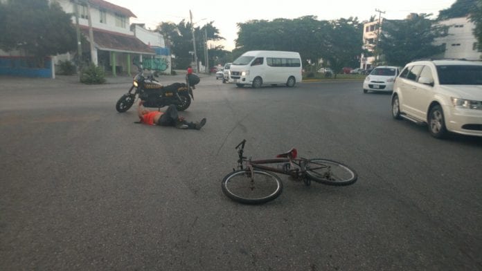 El segundo caso se dio en el cruce de las avenidas Chichén Itzá con la Palenque, en las inmediaciones de la Supermanzana 62, cuando una persona del sexo masculino transitaba en su bicicleta de sur a norte, pero al no haber semáforo tuvo que “torear” los automóviles, desafortunadamente no tuvo suerte y terminó en el suelo.