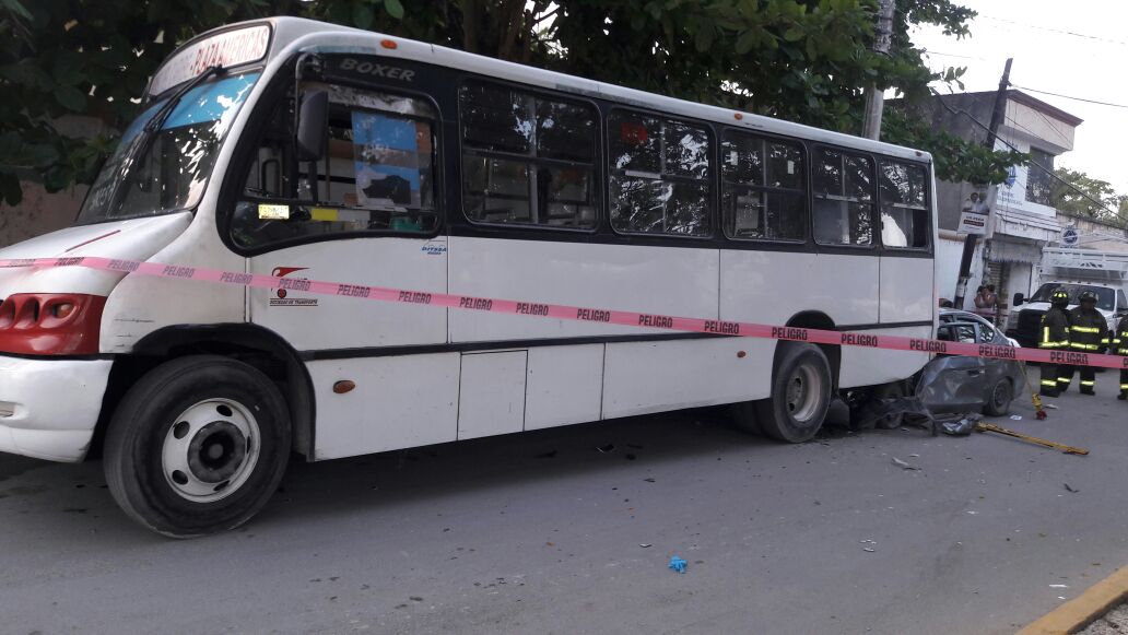 Cancún.- Una persona muerta y tres heridos fue el resultado de un accidente la mañana de hoy domingo, cuando el conductor de un vehículo compacto se estrelló contra la parte trasera de un autobús del transporte público que cubre la ruta a Bonfil.