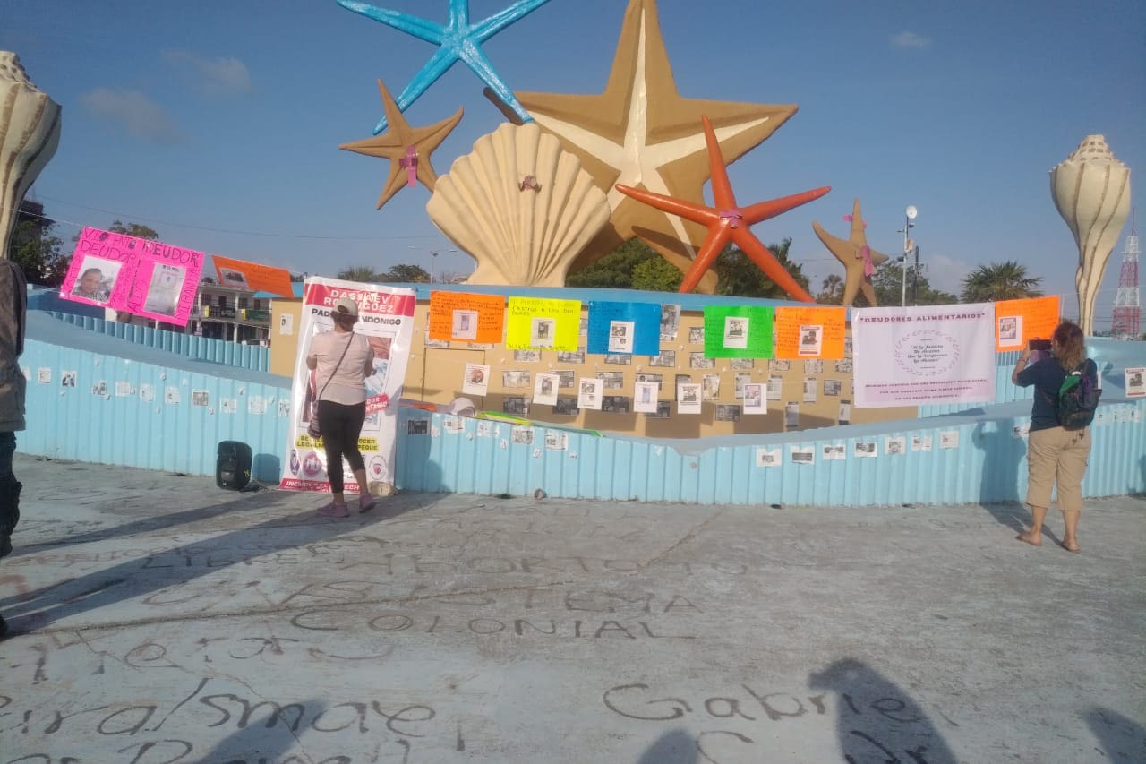 Mujeres integrantes del colectivo “Si la justicia no alcanza, que la vergüenza les alcance” colocaron un nuevo tendedero contra los deudores alimentarios en El Ceviche de Cancún. Posteriormente marcharon hacia la Plaza de la Reforma, donde se encuentra el Palacio Municipal de Benito Juárez. Ahí sus denuncias y demandas fueron escuchadas por la gente presente en un evento de baile, que por cierto aplaudió a las manifestantes.