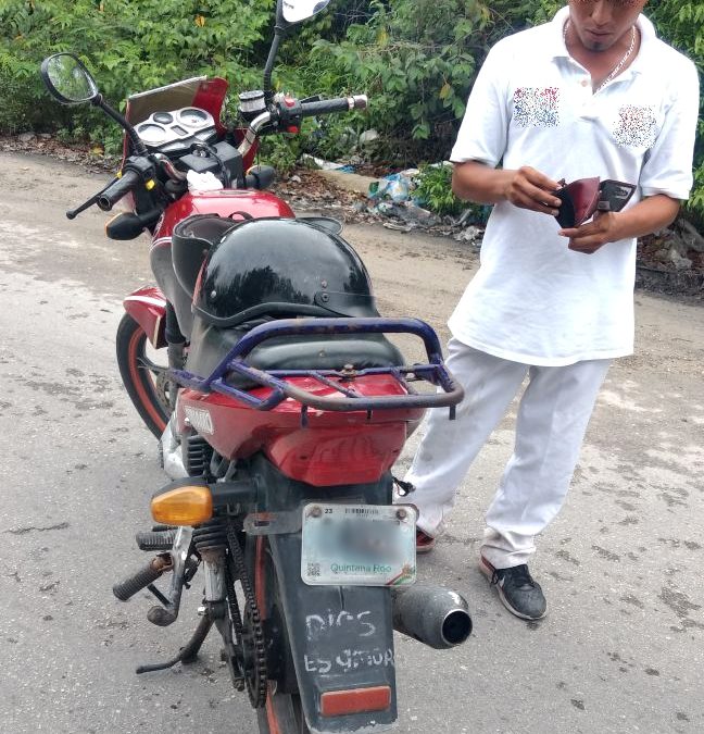 Los agentes de la Policía Estatal realizaban su patrullaje en la Supermanzana 249 con avenida Chac Mool y Arco Vial Norte, cuando observaron a dos personas del sexo masculino que viajaban en una motocicleta marca Dinamo, color rojo.