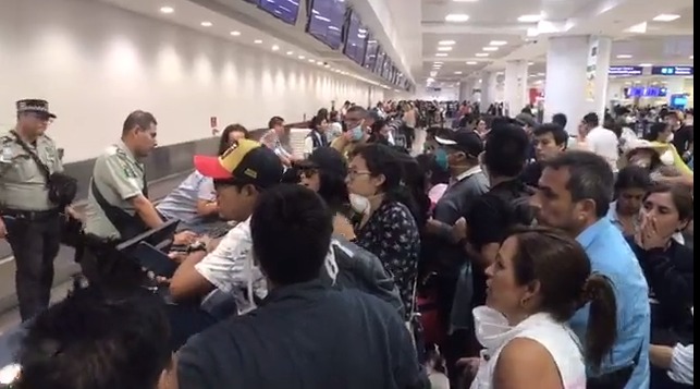 Cancún.- El gobierno de Perú decretó ayer que cerrará su frontera a partir de hoy a la medianoche, lo que hizo que centenares de peruanos acudieran desesperados al Aeropuerto Internacional de Cancún para alcanzar algún vuelo, sin lograrlo.