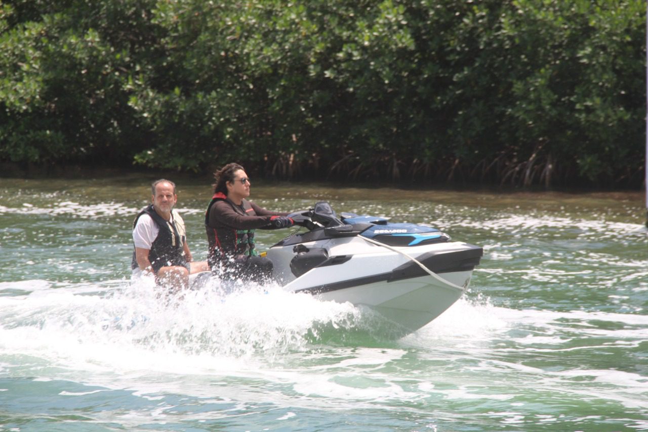 Sobre esta línea de costa, en donde se encuentran algunos de los puntos más icónicos y atractivos de la Zona Hotelera, se pueden apreciar también a guardavidas de Protección Civil realizando recorridos entre las sombrillas y los núcleos humanos, cuidando que los bañistas no se internen demasiado en el mar.
