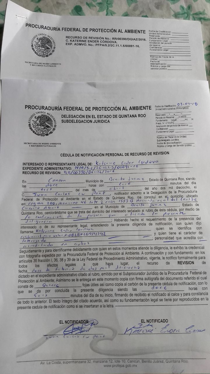 Katerine Ender Córdova, activista y promovente de las denuncias contra los presuntos responsables del ecocidio dio a conocer la resolución emitida por la dependencia.