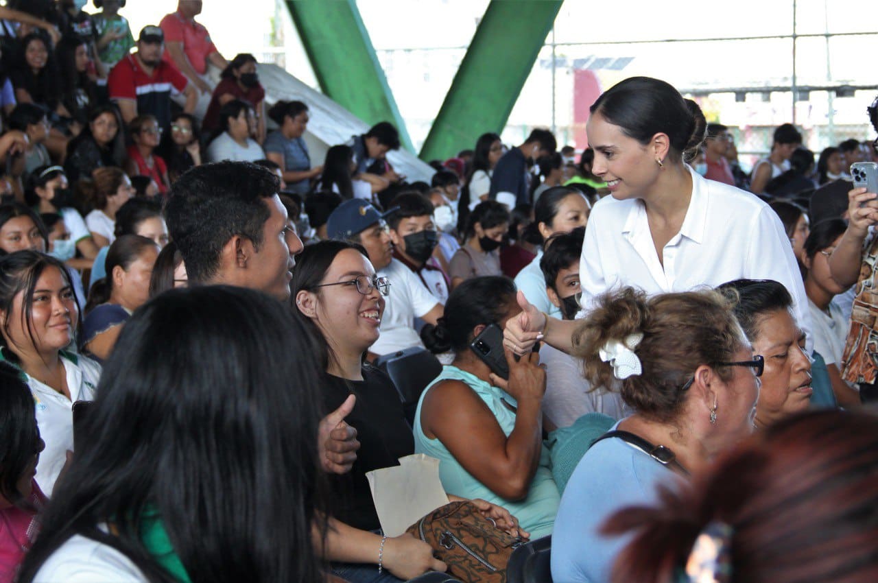 Cancún, Q.R., a 12 de noviembre de 2022.- La Presidenta Municipal, Ana Patricia Peralta, resaltó que en Cancún, gobierno e iniciativa privada apuestan y respaldan el desarrollo de niños y jóvenes para que alcancen un futuro próspero, al participar en la entrega de mil becas de transporte para alumnos de escuelas públicas y privadas desde nivel básico a superior, correspondientes al ciclo 2022-2023.