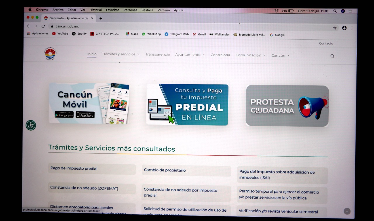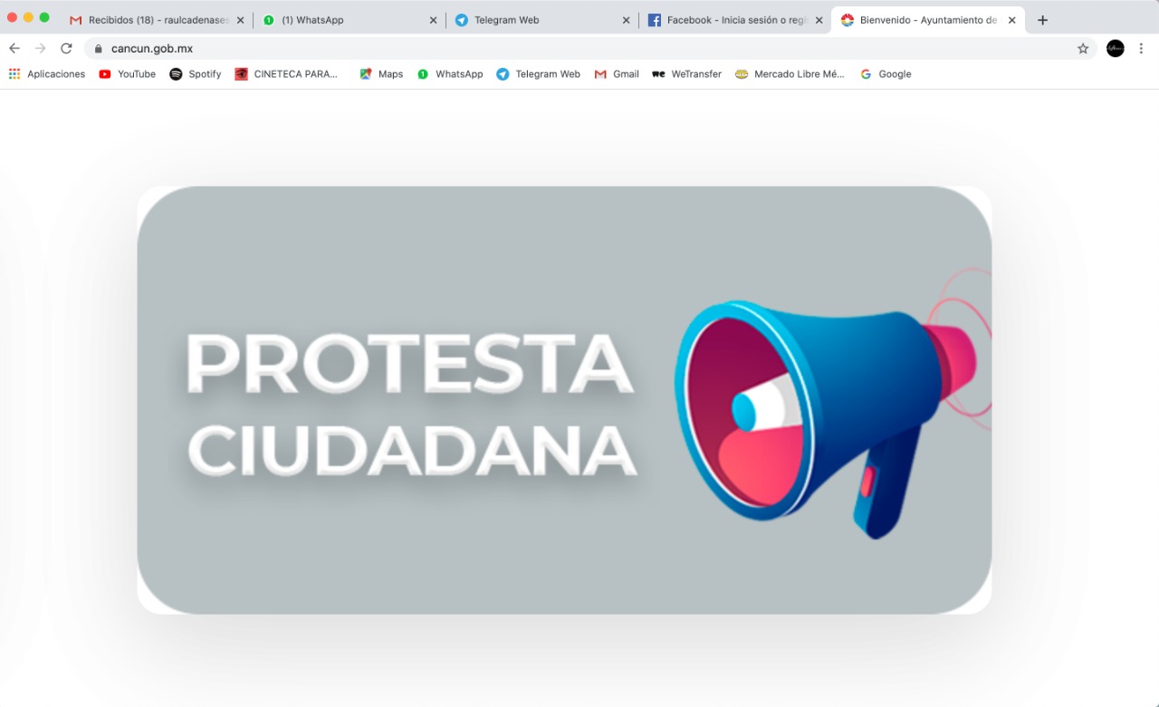 Explicó que para acceder a “Protesta Ciudadana”, debe ingresarse a la página oficial del Ayuntamiento que es www.cancun.gob.mx y seleccionar el ícono con ese nombre, que despliega una nueva ventana que pide al usuario un registro previo para acceder.