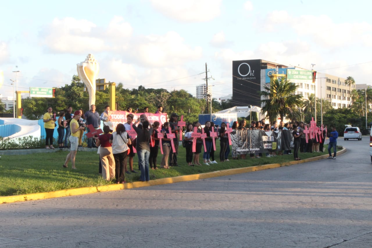 Cancún.- Un grupo mayormente de mujeres se manifestó esta tarde en la Glorieta “El Ceviche” para expresar su repudio hacia los feminicidios y las omisiones por parte del Estado que los fomentan, como parte de la jornada “Unidas hasta la vida” por el Centro Integral de Atención a las Mujeres (CIAM), Amnistía Internacional, y la Comisión de Derechos Humanos del Estado de Quintana Roo (Cdheqroo).