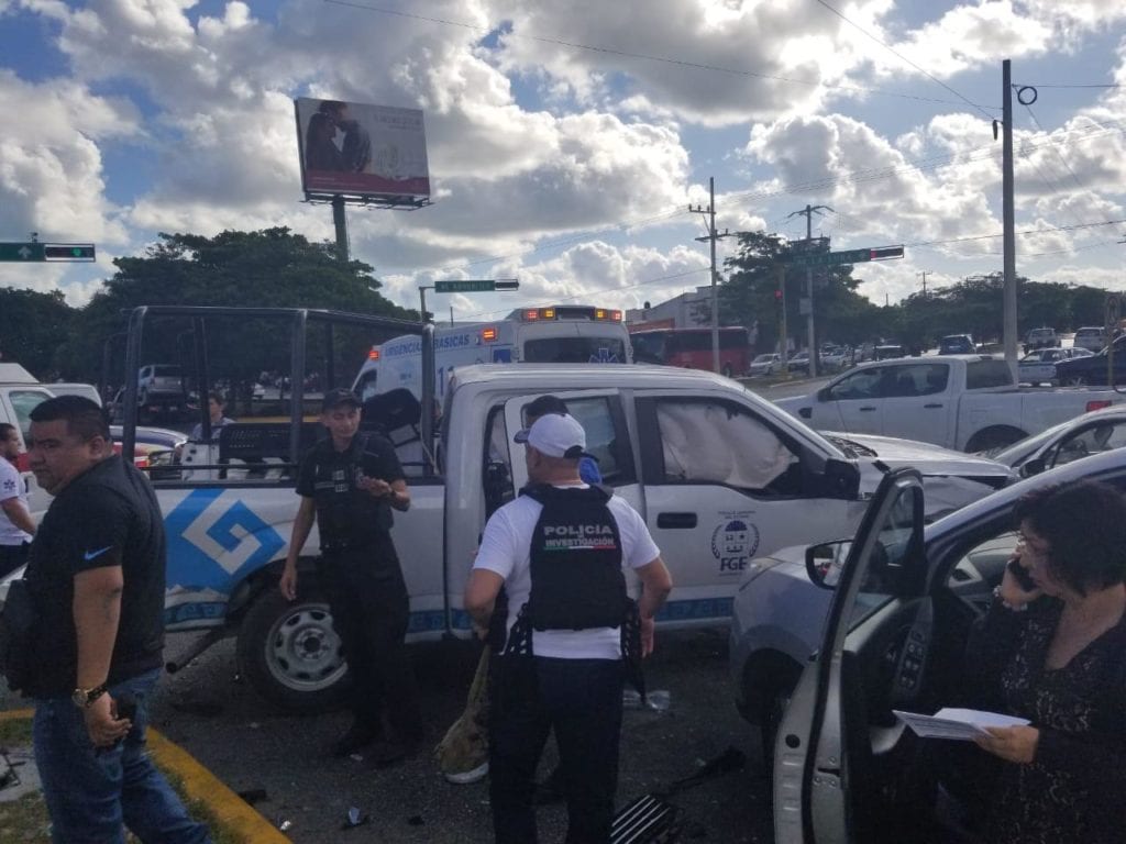 Los hechos se registraron cuando los ministeriales se dirigían a toda velocidad a atender el reporte de disparos con armas de fuego en otra supermanzana de las 200, pero al llegar al semáforo de la avenida Andrés Quintana Roo en la Supermanzana 50 impactó a otros vehículos, con lo que se formó la carambola.