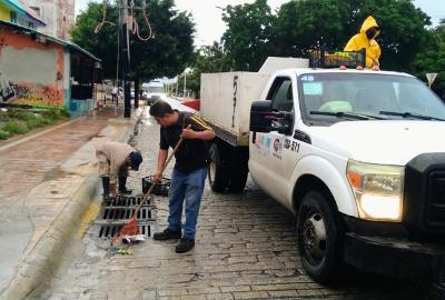 Cancún, Quintana Roo.- Antes, durante y después de las lluvias registradas el fin de semana, el Ayuntamiento de Benito Juárez desplegó un intenso operativo a través de la Dirección General de Servicio Públicos Municipales para realizar el barrido, limpieza de captadores y pozos de absorción en la ciudad, como parte de las acciones preventivas para evitar afectaciones a los benitojuarenses.