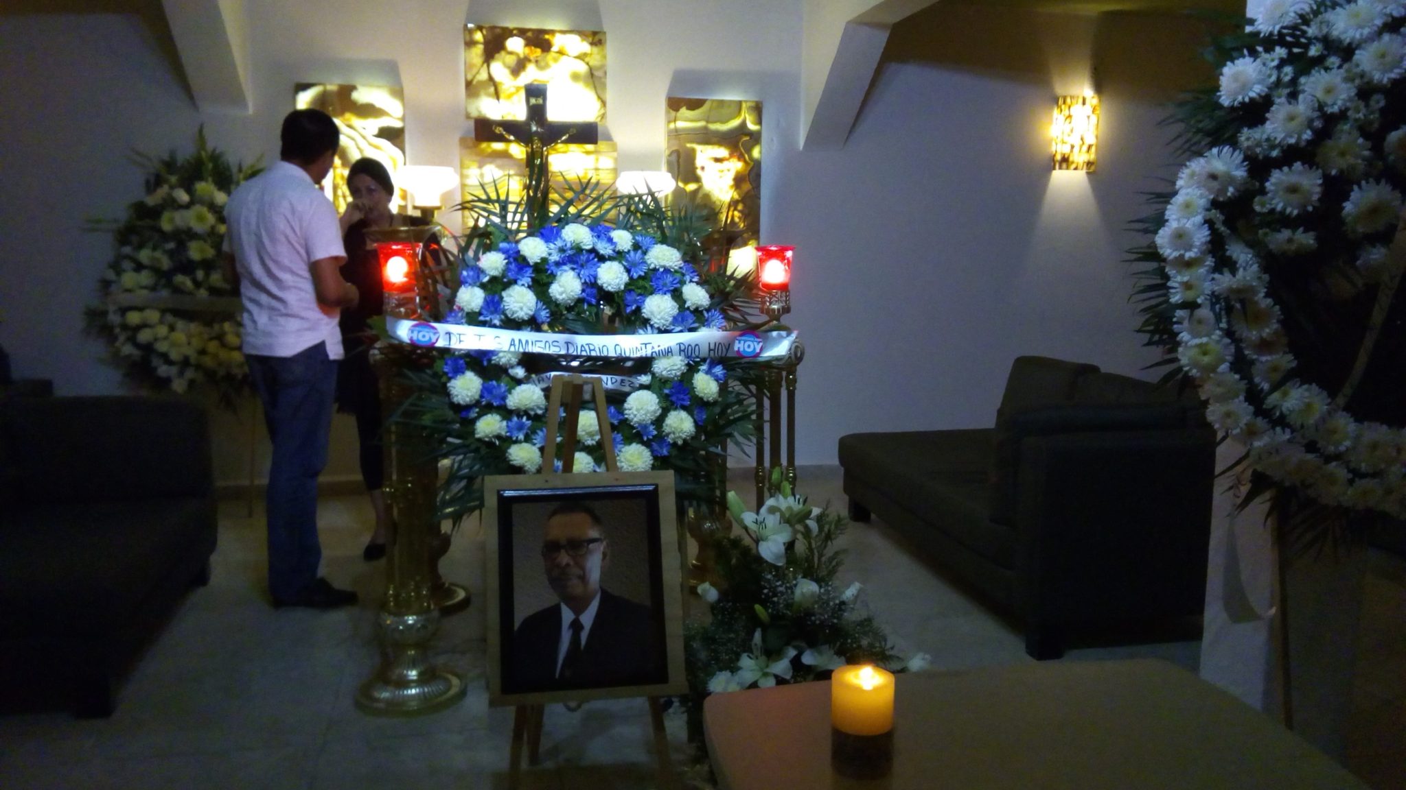 Mara Lezama, Mario Machuca, American Airlines y Quintana Roo Hoy llevaron coronas en memoria del periodista.