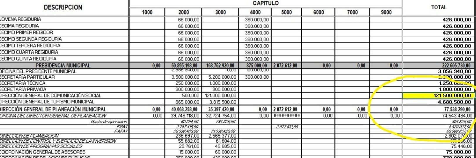 De acuerdo al listado publicado por Grupo Pirámide, la millonaria suma que Estrada Barba pretende se apruebe a pocas semanas del inicio del proceso electoral 2018, es casi cuatro veces el monto que se destinará al deporte; además de 75 millones de pesos para la coordinación de asesores, donde trabaja Indira Carrillo, ex coordinadora de medios de Mauricio Góngora y del primer círculo del senador Félix González Canto.