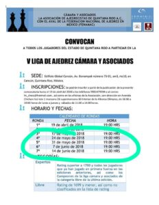 La V Liga se llevará a cabo conforme estaba planeado, pero ya no se dará el enfrentamiento ajedrecista entre Issac Janix Alanís y José Luis Toledo Medina; sin embargo queda vivo el reto, para cuando los tiempos de campaña lo permitan.
