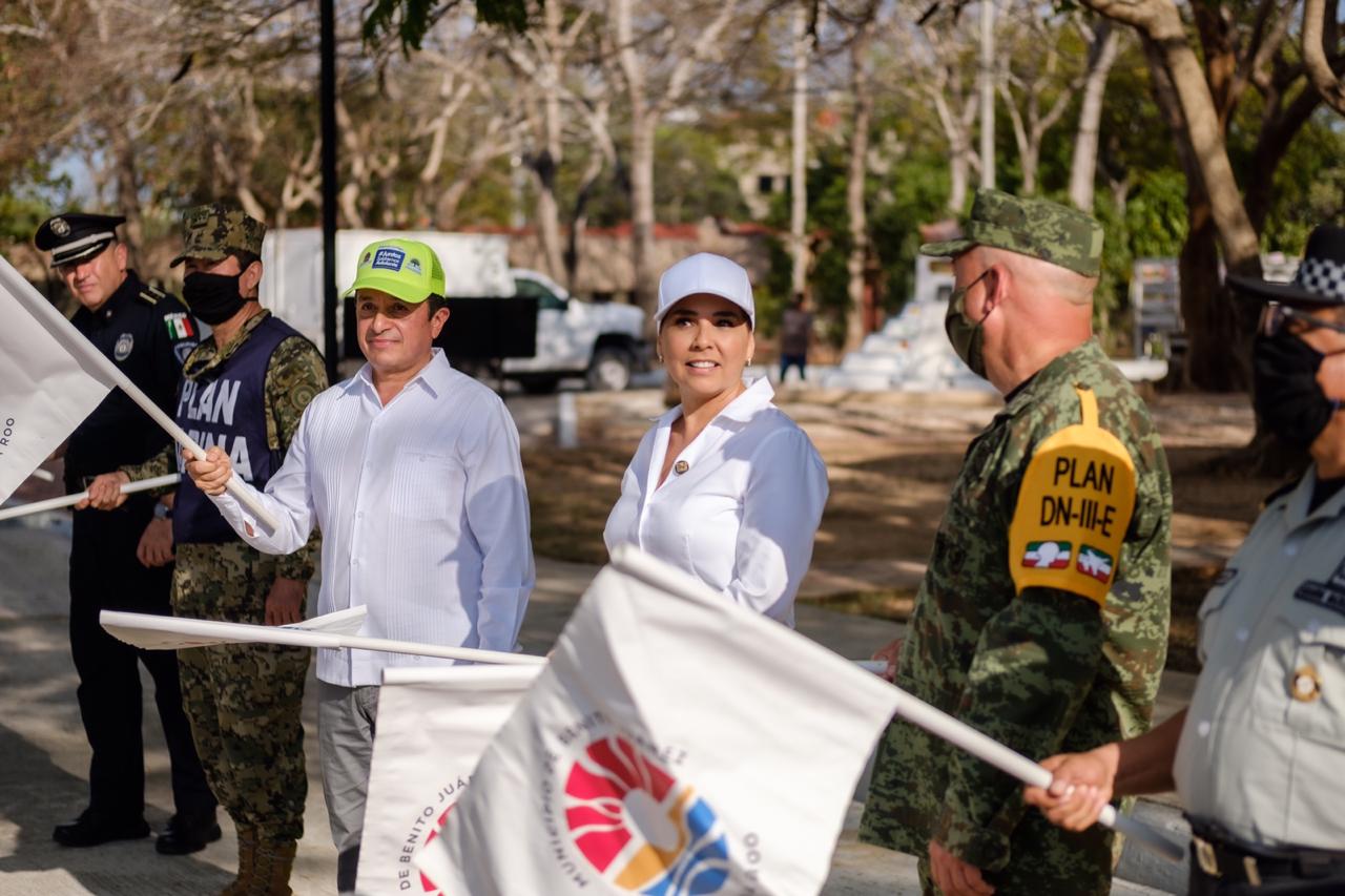 Cancún.- “Somos un pueblo que se une en tiempos apremiantes para defender a los suyos, que hacemos frente a la adversidad con valentía y le tendemos la mano a quien más lo necesita”, destacó la Presidente municipal Mara Lezama, en presencia del Gobernador del Estado, Carlos Joaquín González, durante el banderazo de inicio del Programa de Ayuda Alimentaria frente a la Emergencia COVID-19.