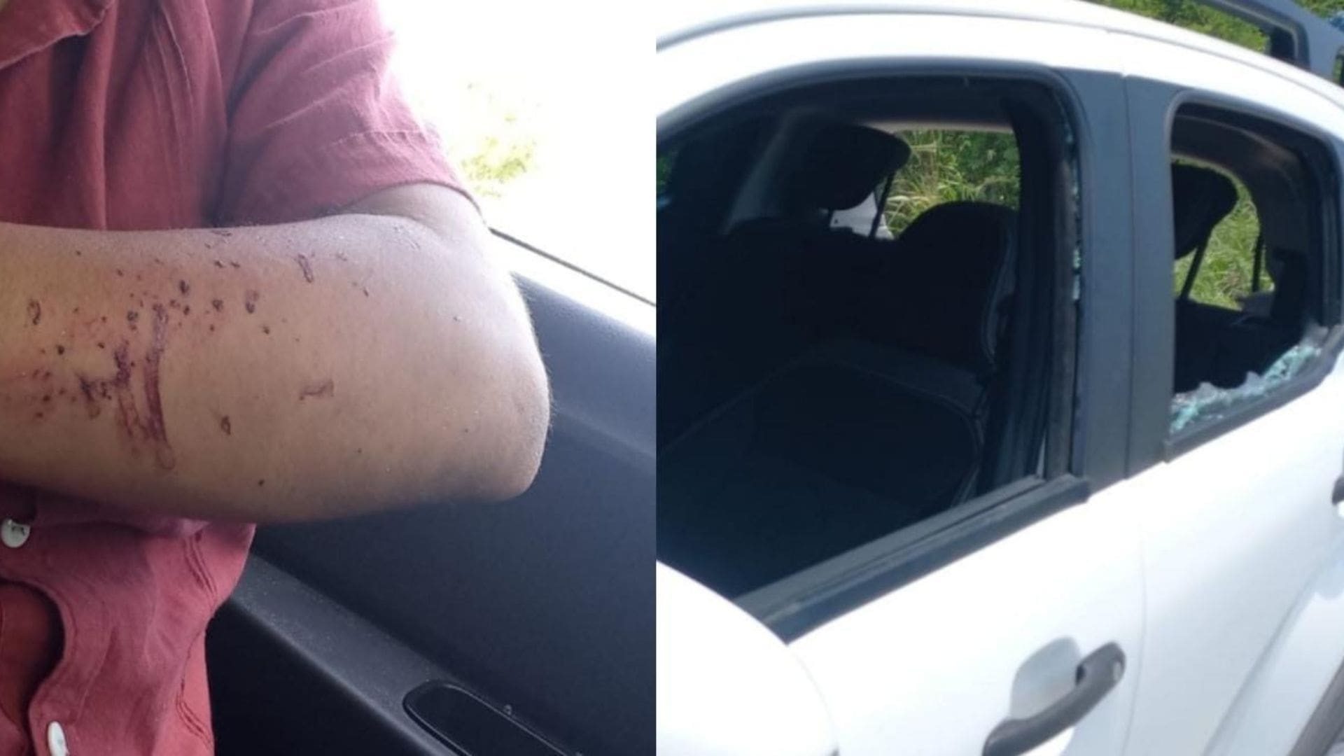 “Al entrar al hotel se me cierran dos carros grises, un Versa y un Vento sin placas y se bajan tres personas con bates en la mano, uno de ellos tenía una camisa del Sindicato de Taxistas y le empiezan a pegar a mi vehículo”, lamentó.
