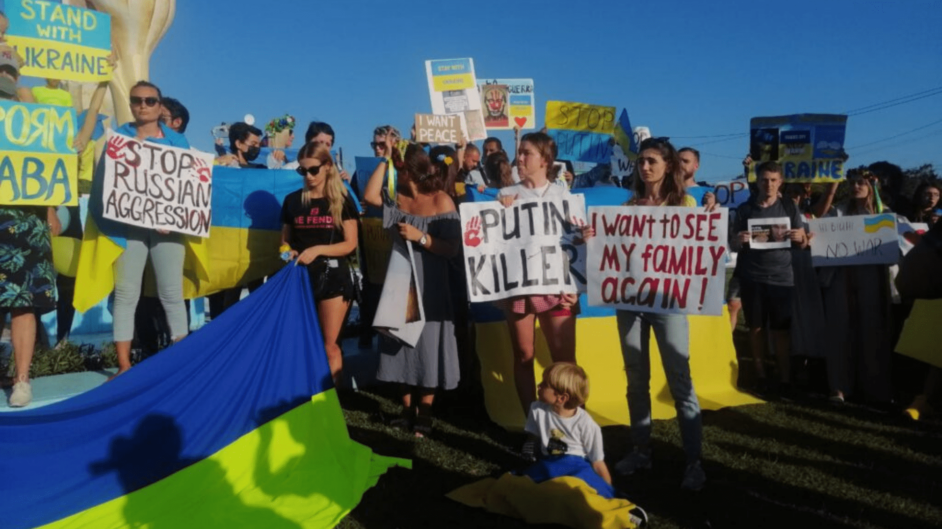 Las personas llevaban banderas del país europeo invadido, además de pancartas. A una voz unísona gritaban consignas en favor de la paz y exigían al gobierno ruso que retirara sus tropas.