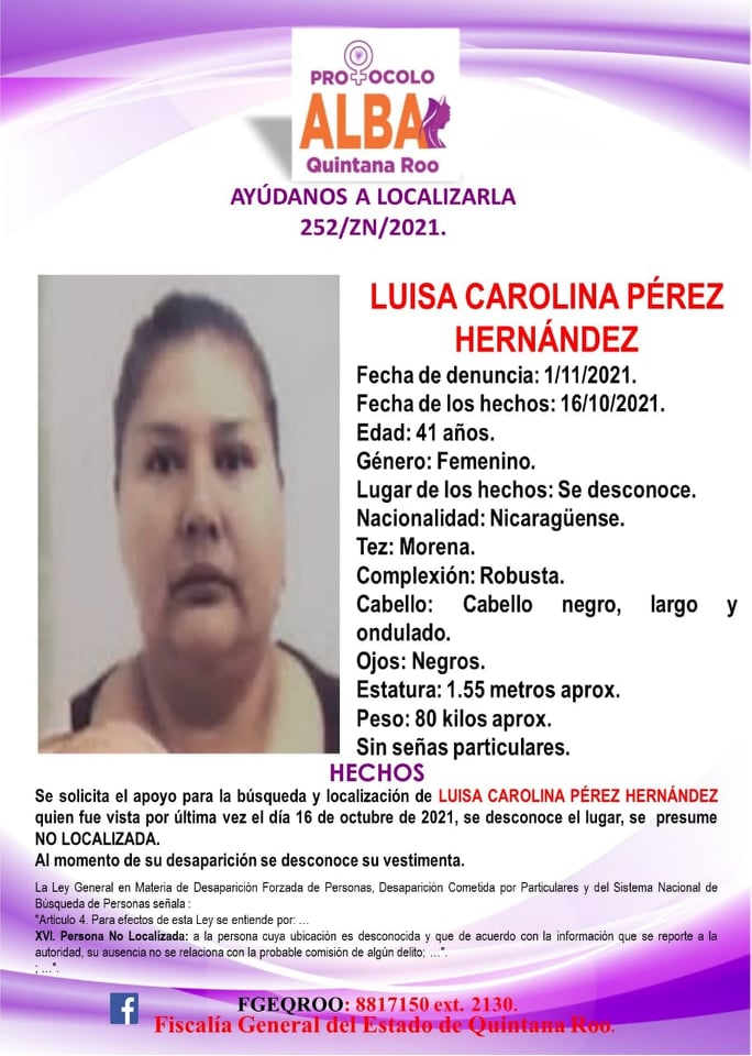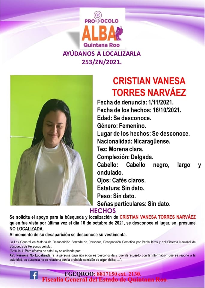 Cancún.- Cuatro integrantes de una familia, de nacionalidad nicaragüense, desaparecieron el pasado 16 de octubre en Quintana Roo, sin que se sepa de su paradero hasta la fecha.
