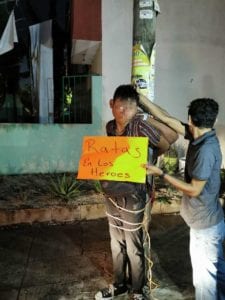 Uno de los supuestos delincuentes incluso fue amarrado a un poste, con una cartulina con la leyenda “Ratas en Los Héroes”.