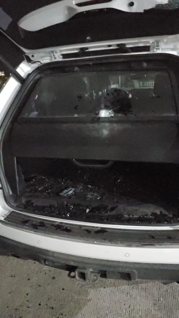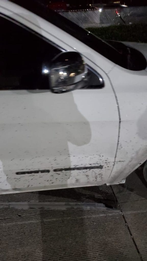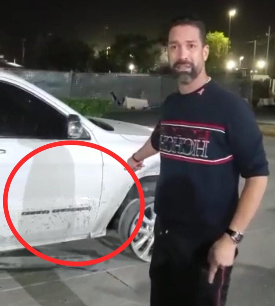 “Mire como me dejaron, mire como me dejaron”, declara en el video, señalando los daños sufridos en el vehículo, con múltiples impactos de bala.