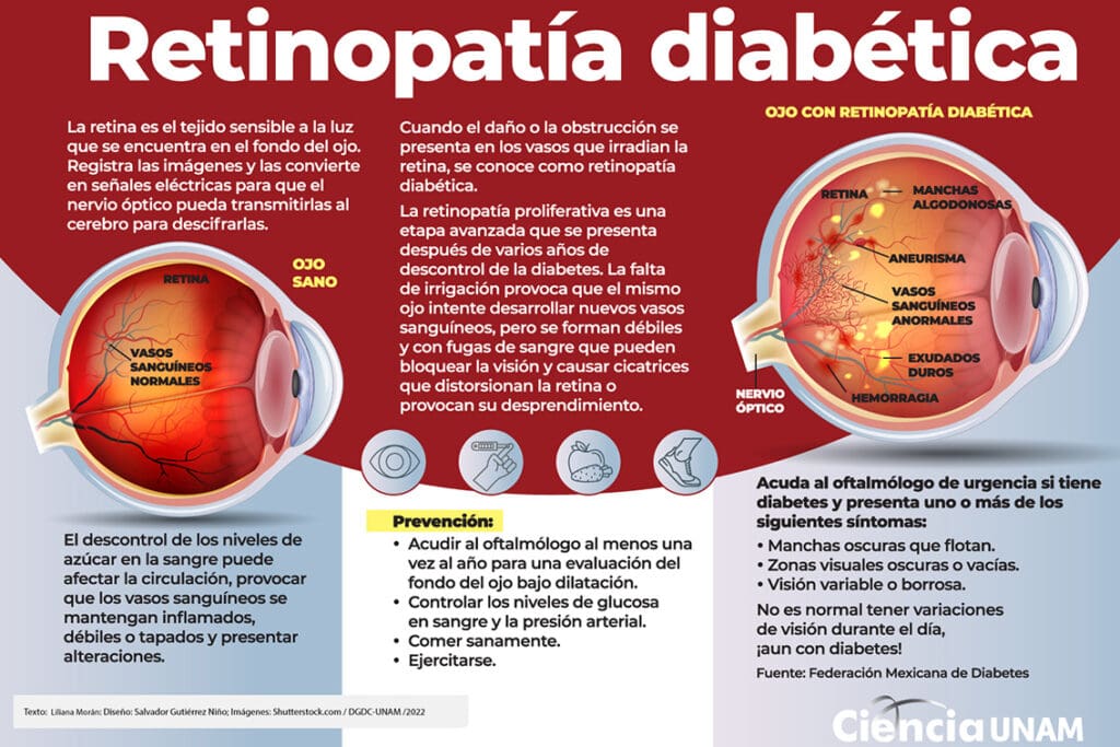 Si el daño es proliferativo, 90 por ciento de los pacientes perderá la vista, ya que difícilmente se detendrá; por tanto, llamó a los médicos de primer contacto a que en cuanto vean a un paciente con diabetes mellitus piensen en retinopatía y nefropatía diabéticas.