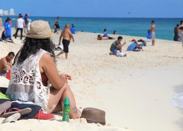 diferentes nacionalidades, tomaron sus trajes de baño y abandonaron sus centros de hospedaje para disfrutar del cálido oleaje del mar Caribe y reconfortantes rayos del astro rey.