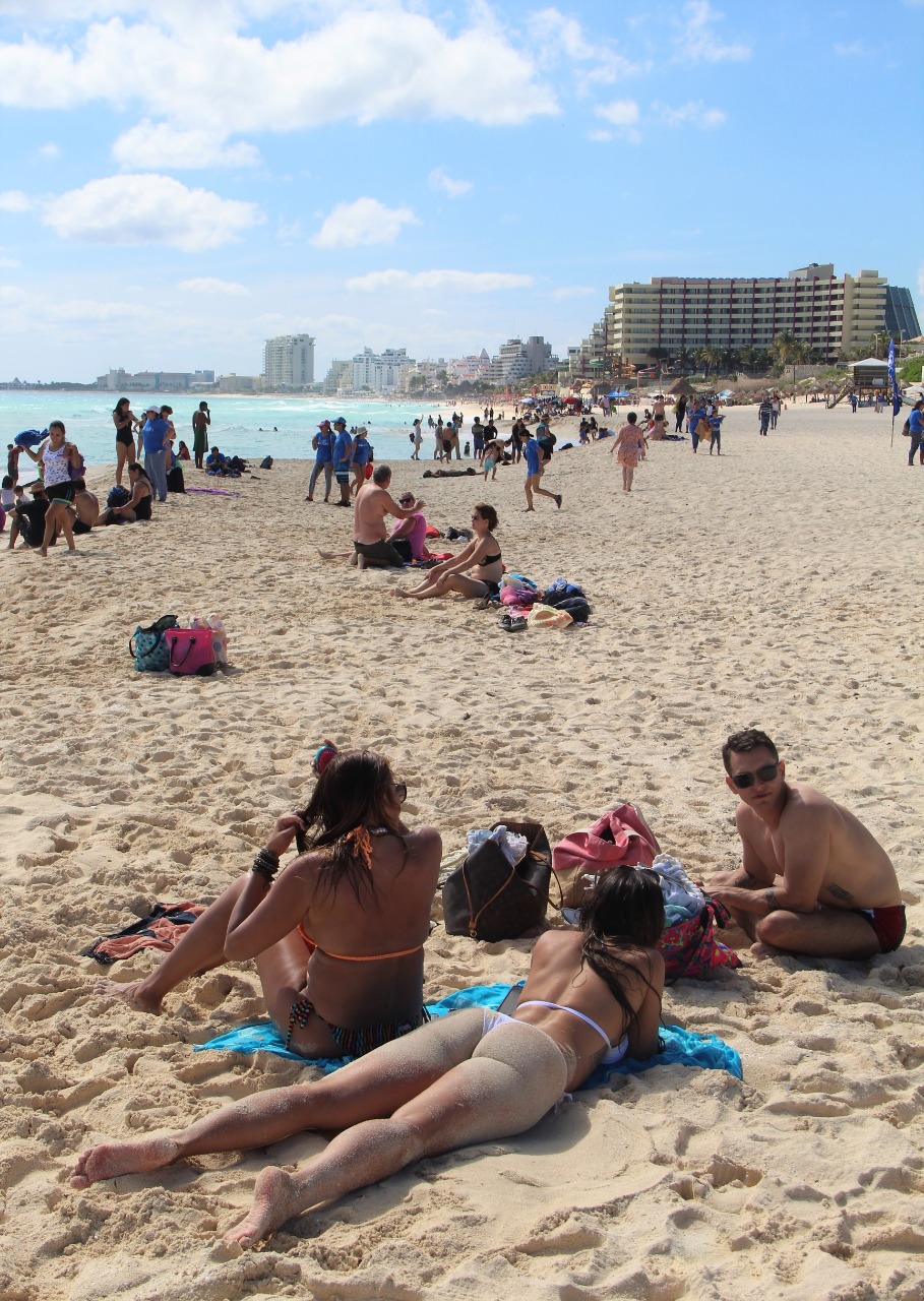 Marlín, Gaviota Azul, Ballenas, Delfines, Chac Mool y Tortugas, los balnearios populares más concurridos en este inicio de semana, tanto por visitantes extranjeros como familias locales.