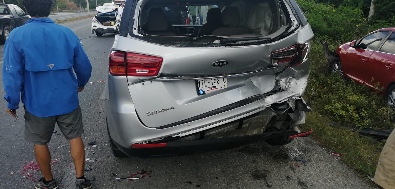 Poco después, en el sentido de norte a sur (de Playa del Carmen hacia Tulum), se suscitó otro accidente vial, al estrellarse una camioneta Chevrolet Trax contra una van, en el kilómetro 281, a corta distancia de Calica.