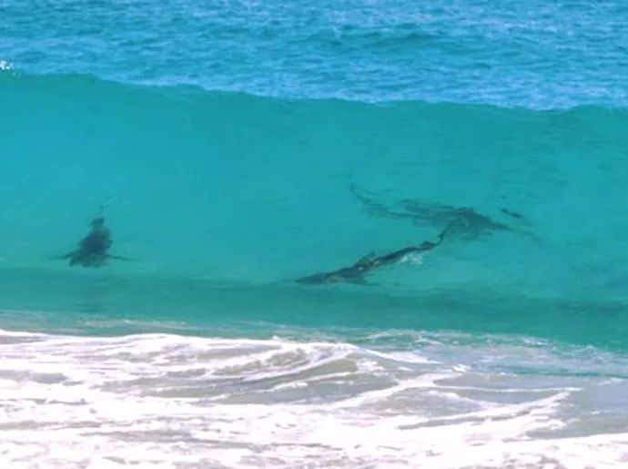 Para muestra tenemos estas imágenes donde se ve al escualo nadando al filo del mar.