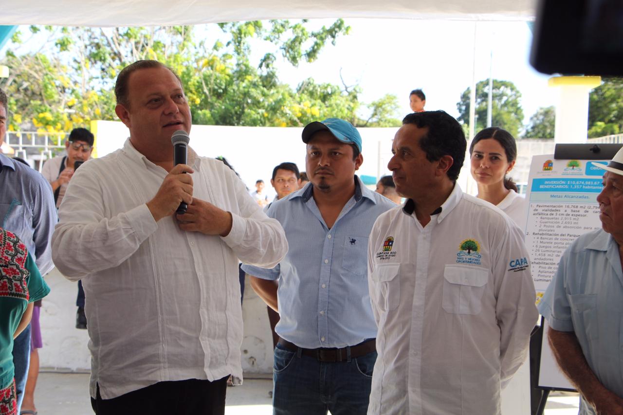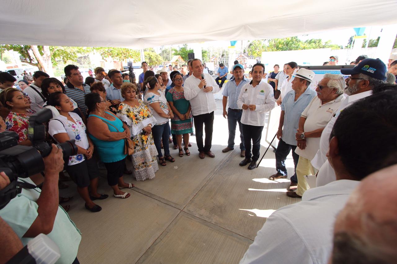 En el evento, el Gobernador adelantó que los trabajos de obra social continuarán en Tepich, Dzula, Santa Rosa, X-yatil, Laguna Kana’, Betania, San Luis y Chunhuás donde serán beneficiados sus habitantes con una inversión aproximada de 70 millones de pesos. “Seguiremos impulsando a la vez el crecimiento y la generación de empleos para la comunidad”, aseguró.