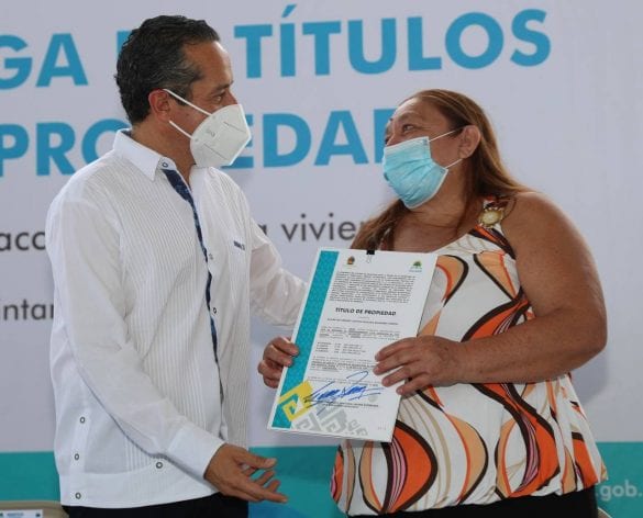 En total se han entregado, desde 2017 hasta el primer trimestre del 2021, un total de 5 mil 386 títulos de propiedad en Quintana Roo, acción que contribuye a disminuir la desigualdad, eje prioritario en el gobierno de Carlos Joaquín.
