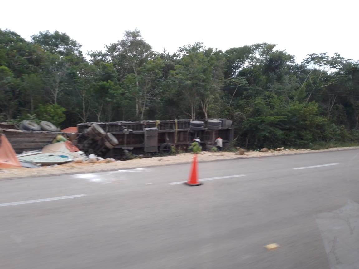 Felipe Carrillo Puerto.- Un accidente de tránsito ocurrió está mañana en el kilómetro 177 de la carretera Reforma Agraria-Puerto Juárez a dos kilómetros antes de la entrada a Chumpon, con pérdidas materiales de un tráiler y el conductor herido.