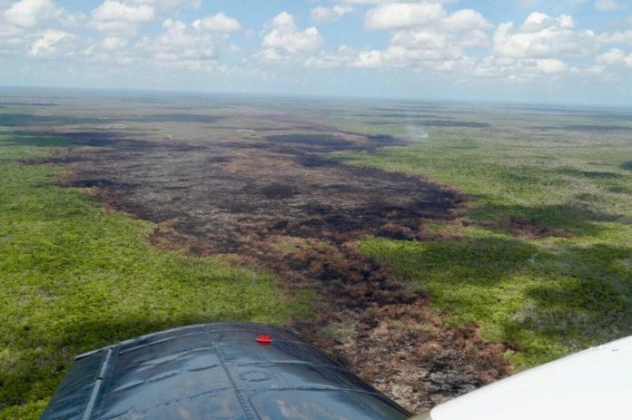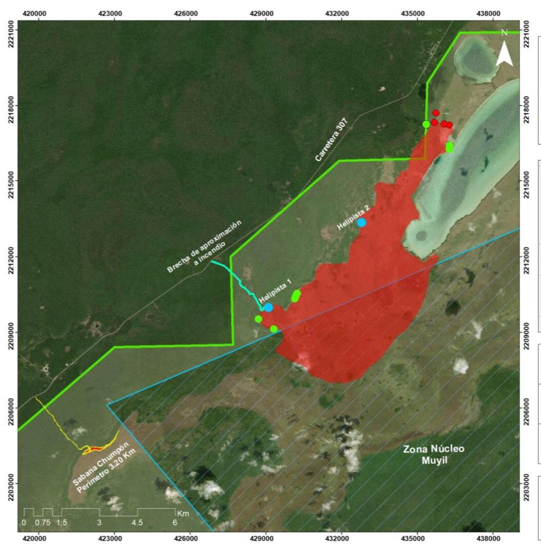Se realizó un sobre vuelo conjunto en el incidente donde participaron el Gobierno del Estado de Quintana Roo que preside Carlos Joaquín, CONAFOR y CONANP. Mediante éste fue posible caracterizar el incendio. El incidente aun presenta puntos muy activos pero la velocidad de propagación ha disminuido.
