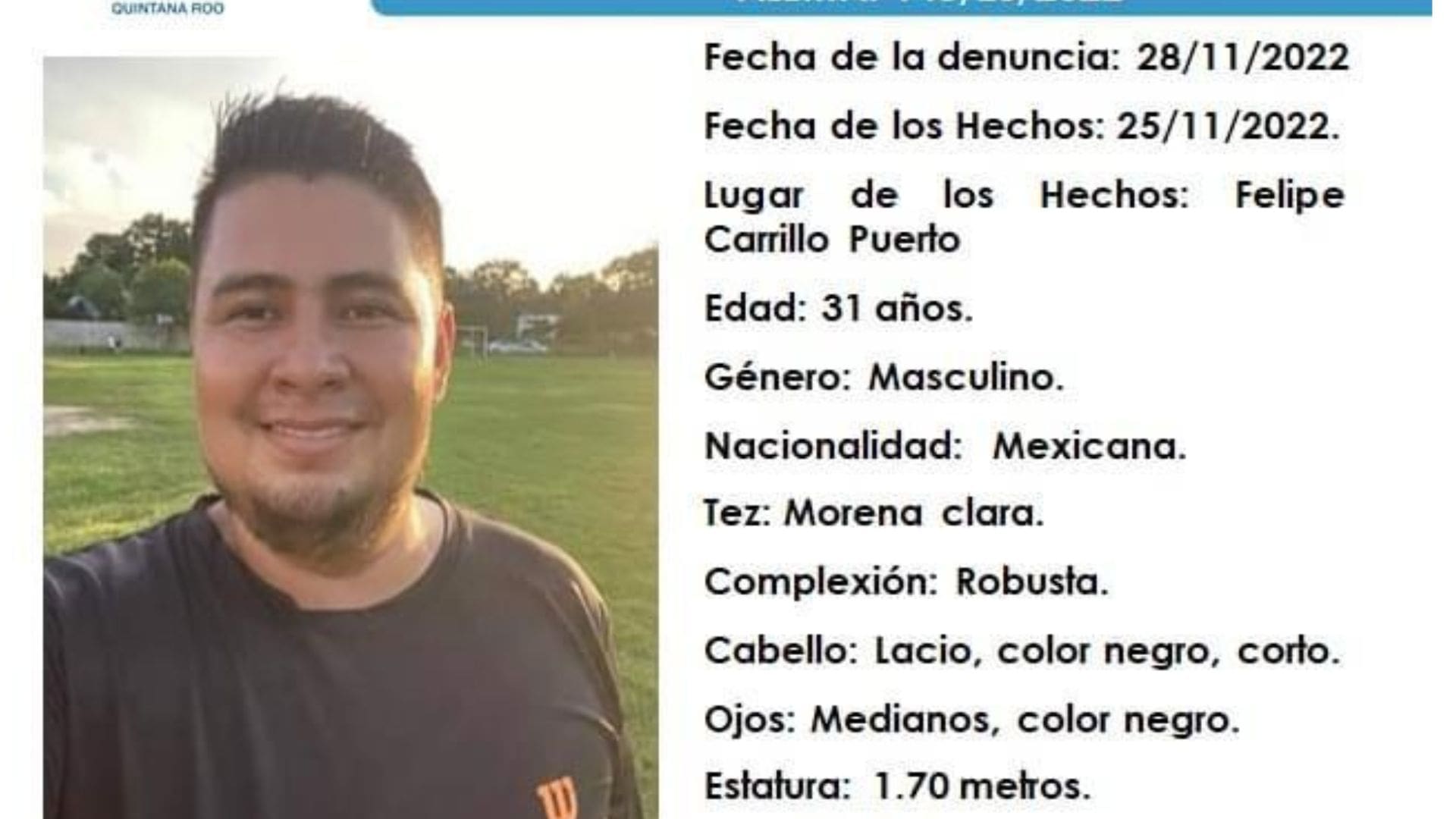 Felipe Carrillo Puerto.- Erick Rodolfo Durán González, actual director de Desarrollo Económico de la administración municipal de Mary Hernández Solís, desapareció desde el pasado 25 de noviembre, razón por la que hoy la Fiscalía General del Estado ha emitido una ficha de búsqueda con sus datos.