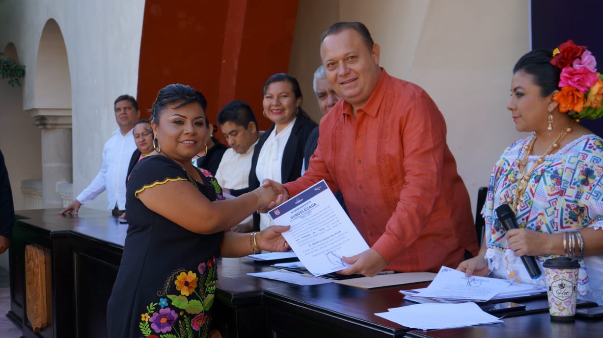 A los alcaldes se sumaron sus respectivos concejales que con los delegados y subdelegados fueron más de cien las personas que rindieron protesta esta mañana, 22 de estas son mujeres que ocuparan el cargo de alcaldesa como es el caso de Olga Lidia González en Noh Bec y delegada como Leydi Marleny Ruiz de Xpichil. Del total de 79 subdelegaciones del municipio doce estarán representadas por mujeres. Entregaron también sus documentos que los acreditan como delegados a Filiberto Dzul Pinto de Laguna Kaná, Edgar Luis Cab Puc de Tepich, a Leydi Marleny Ruiz Pat de Xpichil, Armando Jiménez Canté de Polyuc y a Eliseo Cab Abam de Xhazil Sur.