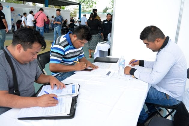 Hombres y mujeres de esta ciudad y de comunidades circunvecinas acudieron a la quinta Feria del Empleo que se realizó en los domos dobles de la colonia Cecilio Chi donde empresas de la iniciativa gubernamental y del sector turístico ofertaron alrededor de 700 vacantes de empleo.