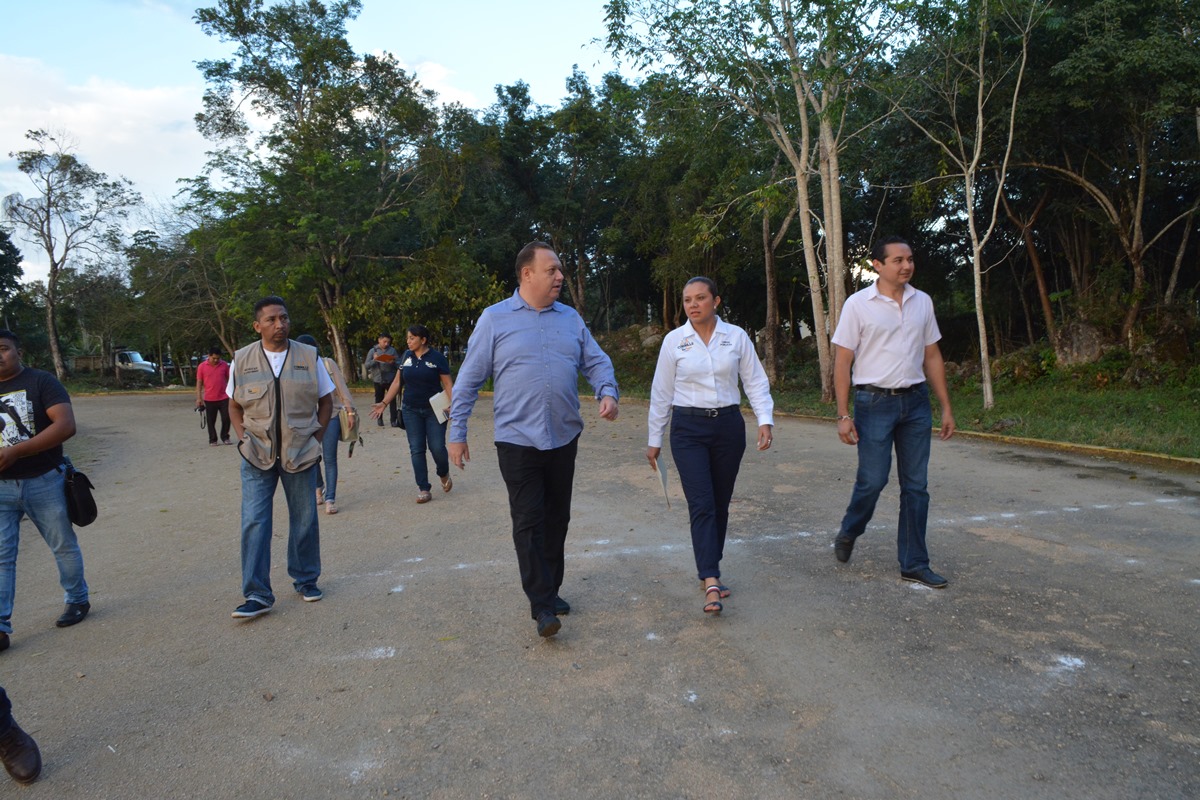 Durante este recorrido el presidente estuvo acompaño de los regidores Francisco Gracias Muñoz, Isidro Huex Mis, Rene Reyes Ramos, el director del DIF Adalberto Yam Pech, el director de Salud Alfredo Hernandez Gonzalez, el director del COJUDEM Wilibaldo Estrella Caamal, así como profesores y jóvenes deportistas.