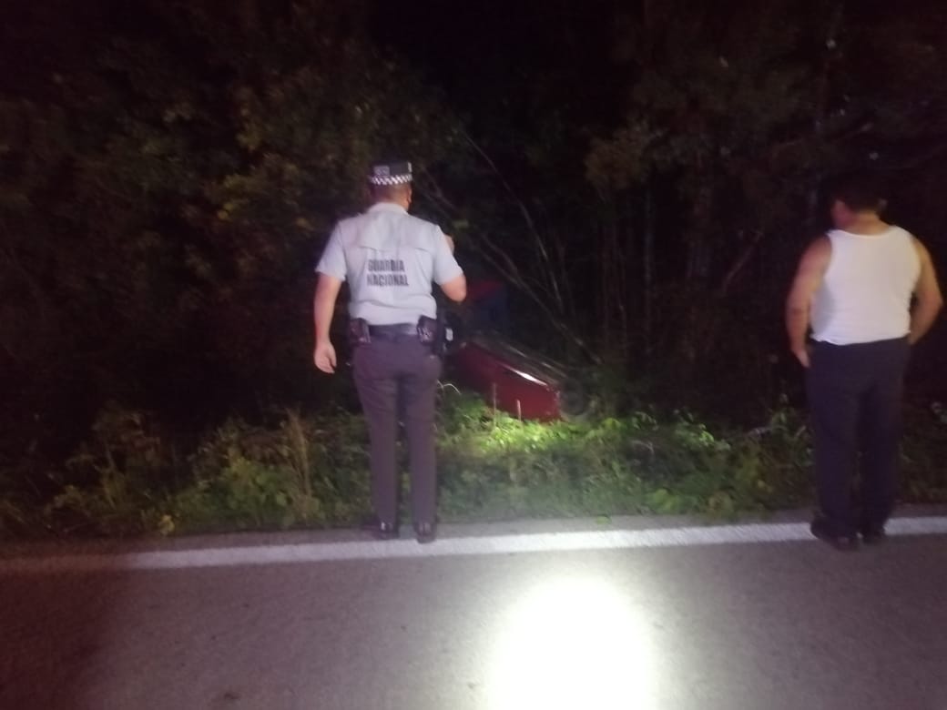 Felipe Carillo Puerto.- La volcadura de un vehículo tipo Chevy, color rojo, se registró durante la madrugada en un tramo de la carretera que lleva a Valladolid, Yucatán.