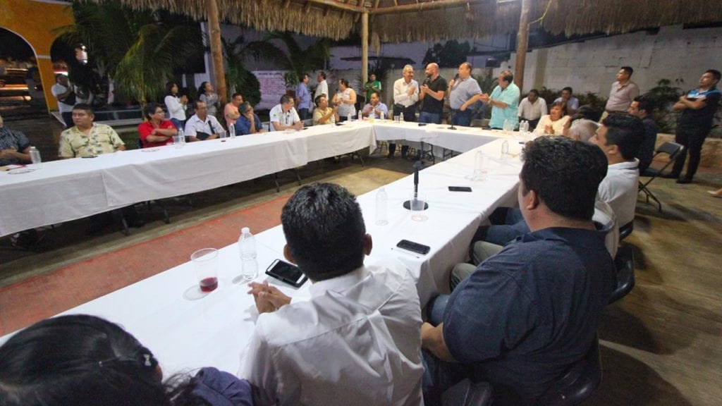 Acompañado del presidente municipal José Esquivel Vargas y Luis Carreón, especialista en desarrollo urbano del equipo de AMLO, Careaga respondió a cada una de las dudas planteadas por los representantes de la Cámara Nacional de Comercio (CANACO) y autoridades ejidales de Felipe Carrillo Puerto; del Congreso Nacional de Comunicación Indígena (CNCI), Sindicatos de Taxistas de los municipios de la Zona Maya, del Instituto Tecnológico Superior de FCP, regidores, funcionarios del Ayuntamiento y representantes de los medios de comunicación.