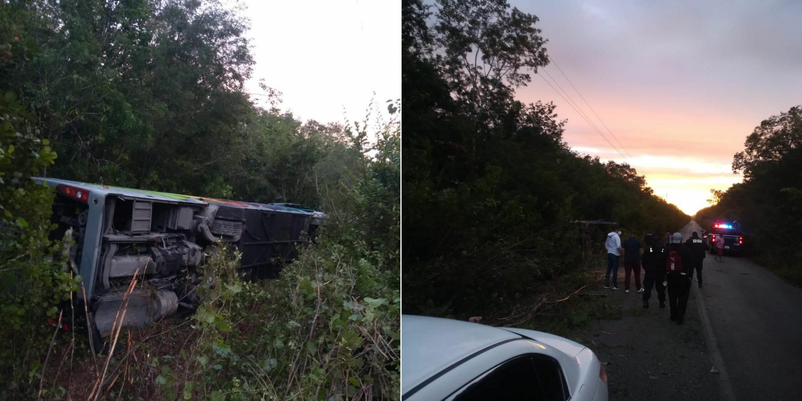 Felipe Carrillo Puerto.- Varios trabajadores resultaron lesionados luego de accidentarse el autobús que los trasladaba a su centro de trabajo en el Hotel Sirenis, la madrugada de hoy sábado.