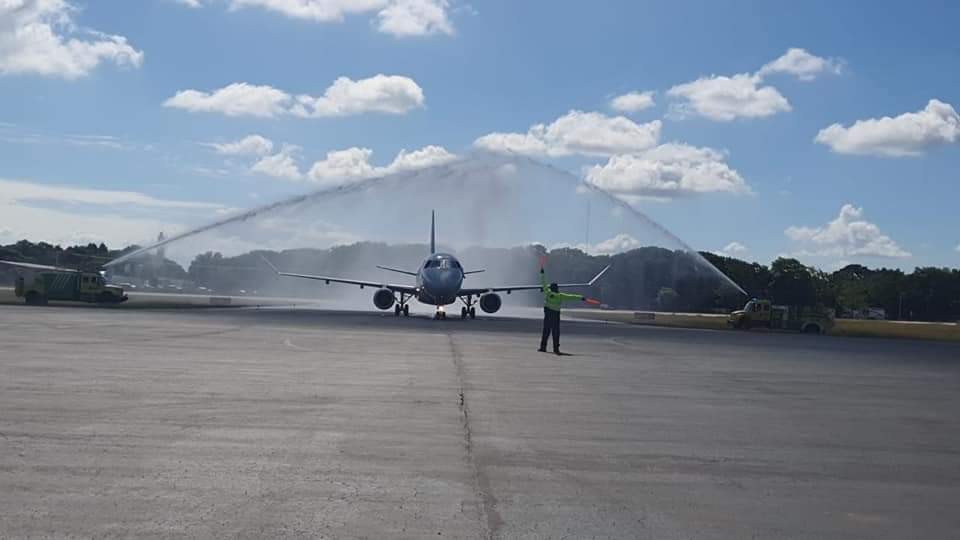 Chetumal.- Hoy aterrizó en el Aeropuerto Internacional de Chetumal el primer vuelo de la nueva ruta directa de American Airlines con Miami, la que se espera quede de manera permanente.