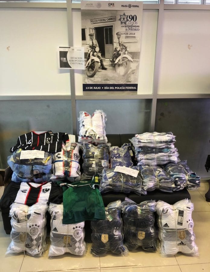 Chetumal.- En el área de carga del Aeropuerto de Chetumal se detectó un lote de uniformes de diversas marcas sin comprobar, por lo que la mercancía fue asegurada.