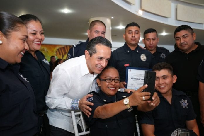 En el Centro Social Bellavista de esta ciudad, el gobernador de Quintana Roo también reconoció a elementos que durante un periodo mínimo de 15 años se han desempeñado con honestidad, lealtad y valor en el ejercicio de sus labores, entre ellos Crescencio Serrano Rodríguez, de José María Morelos, con 37 años de servicio.