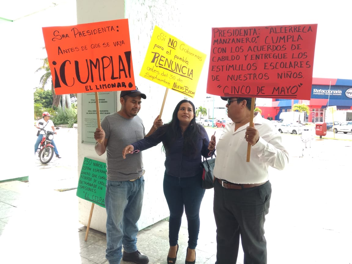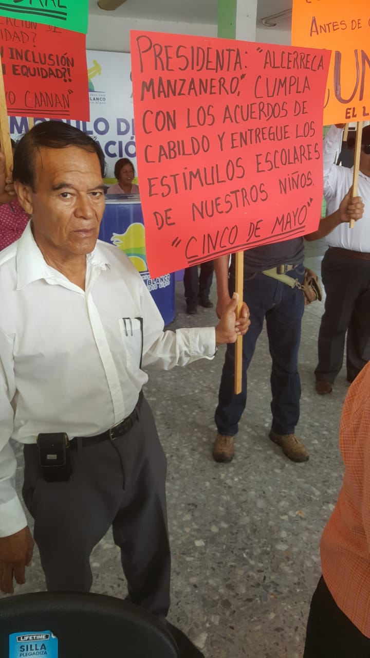 “Lo que inicio hoy, que eso un plantón permanente hasta logras el pago de los estímulos escolares niños de Othón P. Blanco de alto y muy alto grado de marginación. Asumo la responsabilidad estricta en lo personal y hago fuera de toda responsabilidad a mis compañeras de la comisión”.