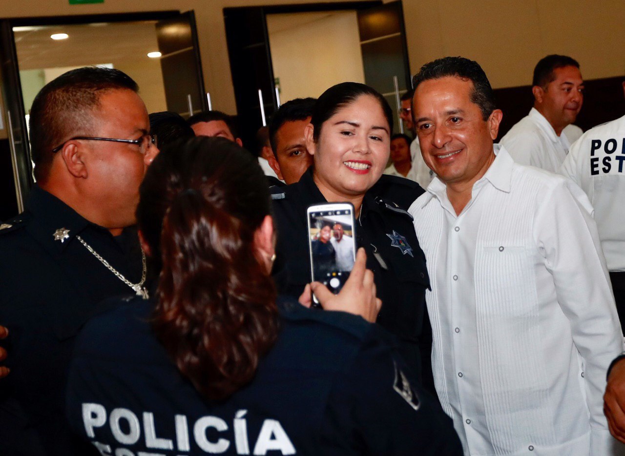 En el evento, el gobernador Carlos Joaquín anunció cambios económicos para que las familias de los policías tengan más y mejores oportunidades de vivir mejor.
